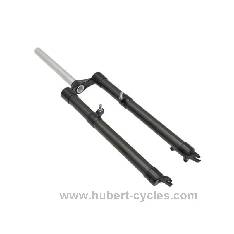 FOURCHE VTT 29″ RIGIDE DROITE ALU 7075 FOURREAUX CARBONE 3K POUR FREIN A DISQUE ET V-BRAKE PIVOT LISSE 1″1/8-28,6 EXTERIEUR poids 1kg
